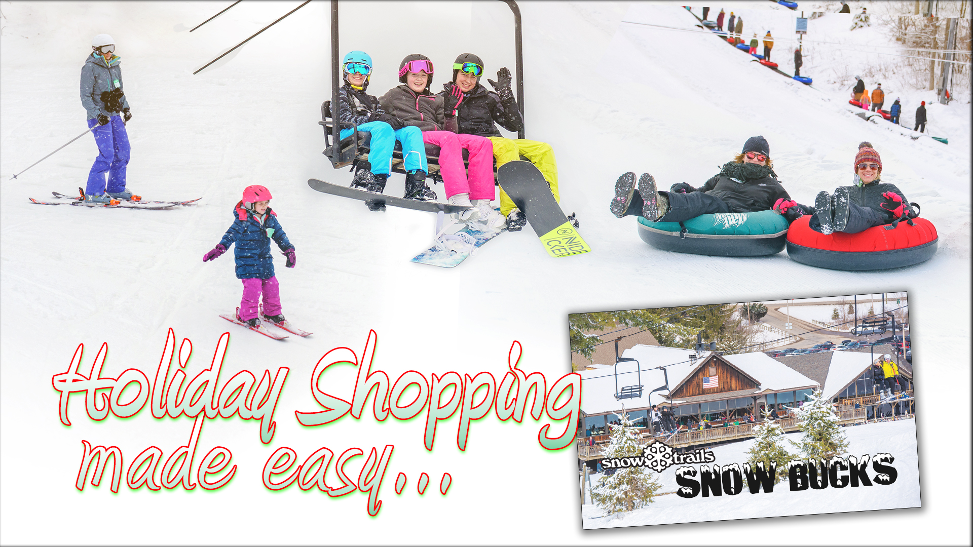 Everyone appreciates Gift Cards. Purchase Food, Apparel, Lift Tickets, Snow Tubing Tickets, anything throughout the Resort and Ski Shop, with Snow Bucks!